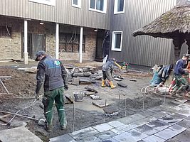 Pflaster/Platten Verlegung von Beton/ oder Naturstein auf Plätzen Wegen, Terrassenflächen